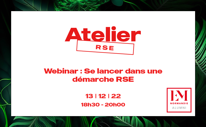 We look forward to seeing you online on Tuesday December 13 at 6.30pm, in the presence of Elise COURAULT, CSR Consultant and Business Development Manager at O2M Conseil and Ugo GRANDI (class of 2021), CSR / Quality Consultant at Sowrs.
