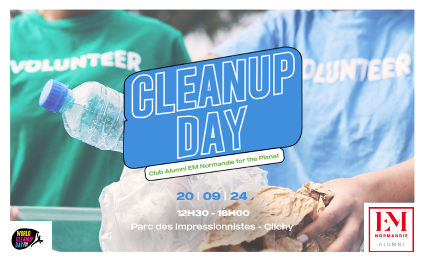 Aware of the responsibility that our community must have on its territory, the EM Normandie for the Planet Alumni Club is organizing a Cleanup Day on Friday September 20 between 1 and 4 pm in Clichy with all EM Normandie stakeholders (students, graduates, partner companies, employees) as part of the worldwide "Cleanup Week".
